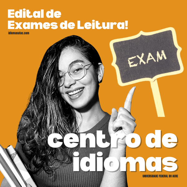 O Programa de Extensão de Ensino de Línguas da Universidade Federal do Acre – Centro de Idiomas da Ufac – torna público o edital de vagas para realização de exames on-line de leitura em Língua Inglesa, em Língua Espanhola e em Língua Portuguesa como língua adicional – para estrangeiros, indígenas e surdos, com 100 (cem) vagas para cada língua, sendo 60 (sessenta) vagas para comunidade interna e 40 (quarenta) vagas para comunidade externa à universidade.