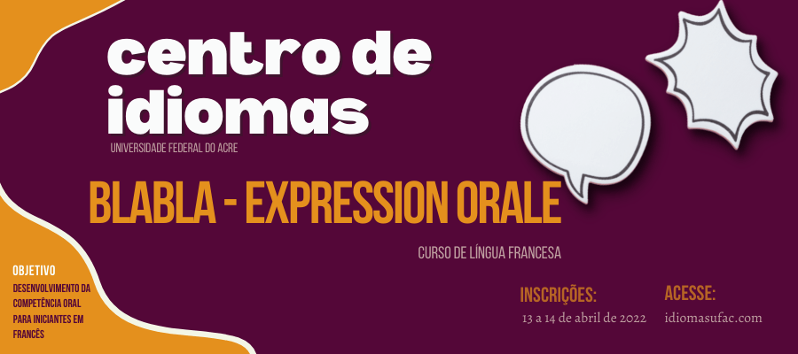 O Centro de Idiomas da Universidade Federal do Acre retoma suas atividades presenciais em 2022, com a oferta de curso de Língua Francesa, cujo foco é o desenvolvimento da competência oral para iniciantes.